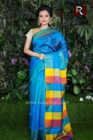 Original price was: ₹4,550.00.₹4,150.00Current price is: ₹4,150.00.Bishnupuri Katan Silk Saree of light blue color