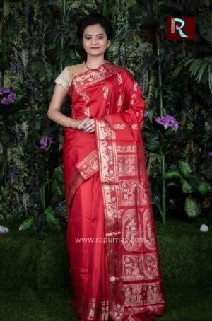 Original price was: ₹56,000.00.₹42,000.00Current price is: ₹42,000.00.Crimson Baluchari Silk Saree