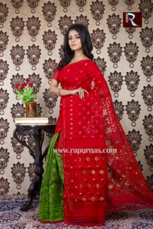 Original price was: ₹2,650.00.₹2,200.00Current price is: ₹2,200.00.Red and green combo Dhakai Jamdani Saree