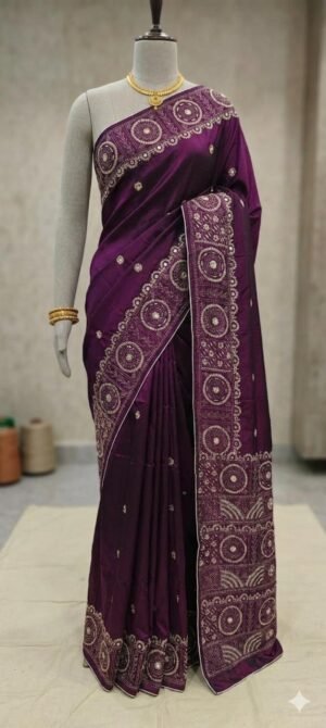 Original price was: ₹10,900.00.₹8,100.00Current price is: ₹8,100.00.Kantha Stitch Work on Pure Bangalore Silk Saree