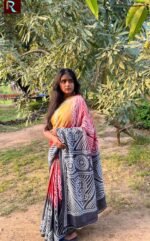 Elevate your ensemble with the exquisite fusion of tradition and luxury in our Gujrati stitch on dyed Gachhi Tussar Silk Saree adorned with Gujarati Stitch detailing. Immerse yourself in the timeless charm of Gujarati craftsmanship intricately woven into the lustrous fabric of Gachhi Tussar silk. Each stitch tells a tale of heritage and elegance, adding a touch of opulence to your attire. Whether it’s a festive celebration or a formal occasion, embrace the allure of tradition with this stunning combination of Gachhi Tussar silk and Gujarati stitch, embodying sophistication and cultural richness.