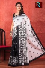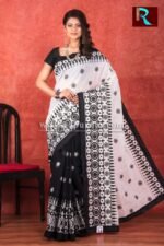 Kachhi Kathiawari work on BD Cotton Saree of black and white combination