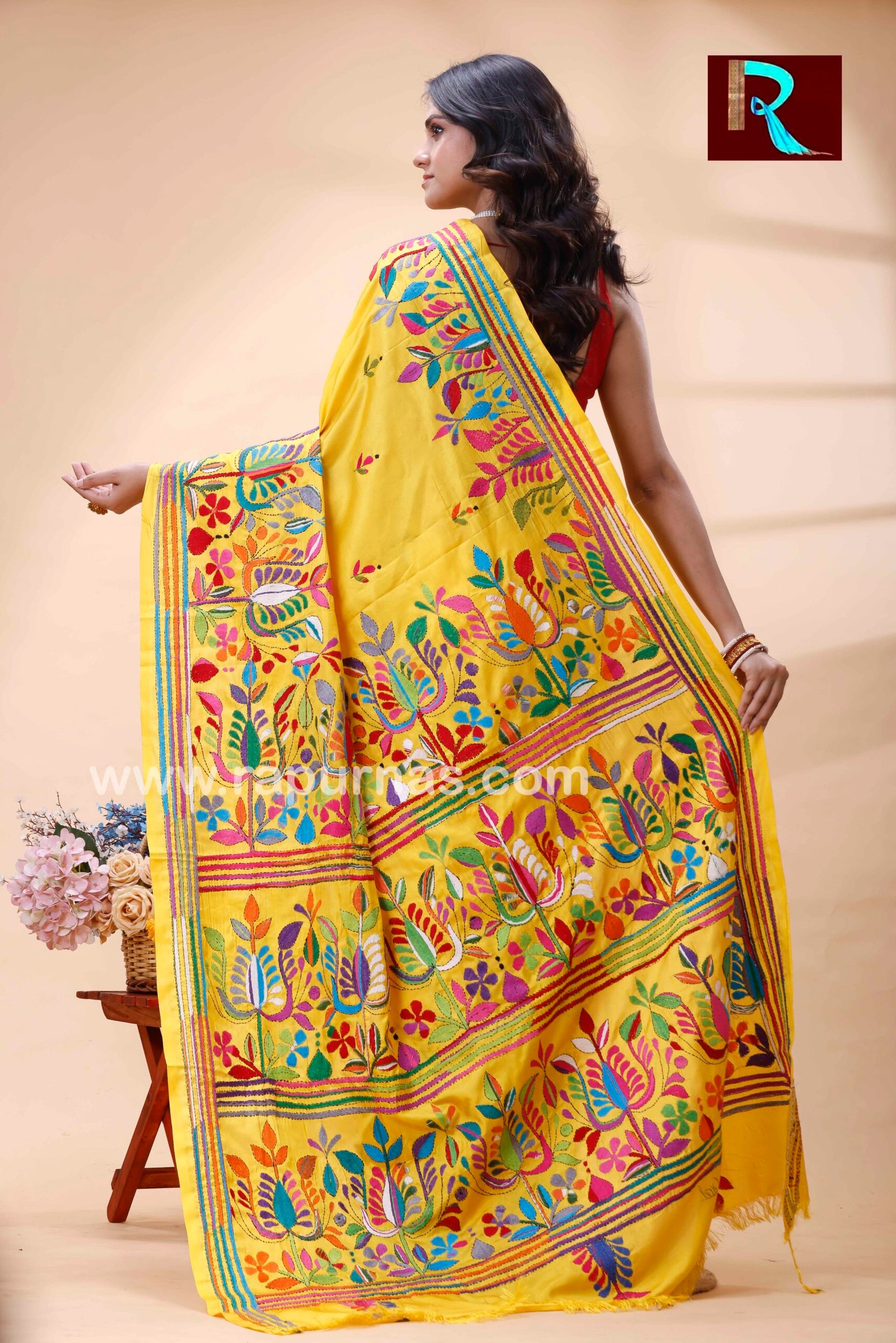 - Hand embroidered Kantha Stitch Saree