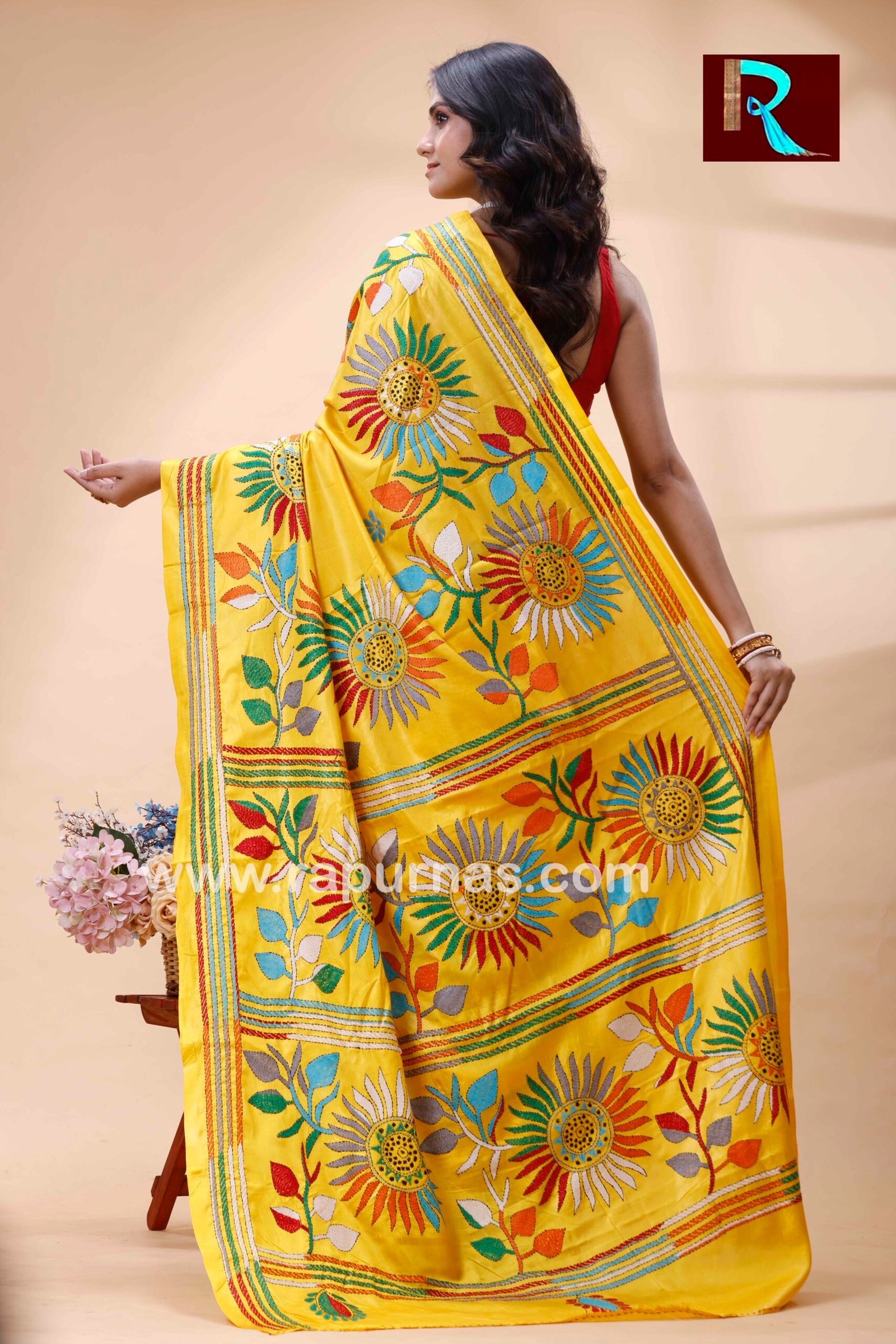 - Hand embroidered Kantha Stitch Saree