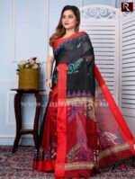 Kantha Stitch Work on Handloom Saree .The intricate kantha embroidery motifs on the plush fabric texture with charming color redefine the beauty of this saree. This is another gem from the trove of Rapurna’s collection. This ethnic handicraft from Shantiniketan is another creative finesse of Bengal.