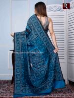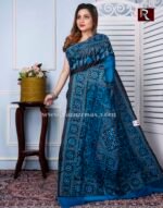 Kantha Stitch Work on Pure Bangalore Silk Saree .The intricate kantha embroidery motifs on the plush silk texture with charming color redefine the beauty of this saree. This is another gem from the trove of Rapurna’s collection. This ethnic handicraft from Shantiniketan is another creative finesse of Bengal.