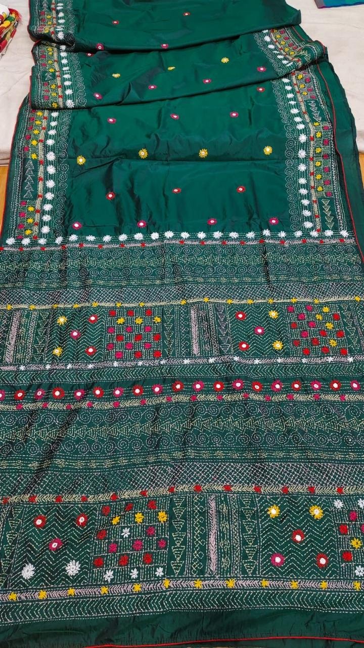 Lambani Embroidery on Blended Silk Saree