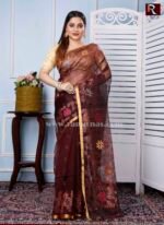 Dhakai Jamdani Saree. The purity of elegance is pretty evident from this Jamdani Saree of Rapurna’s.