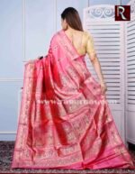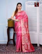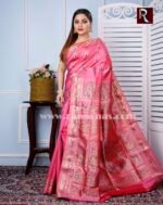 Onion Pink Swarnachari Silk Saree of amazing shade . Baluchari Silk Saree and Swarnachari silk Saree are the very essence of Bengal heritage and aesthetics . Rediscover yourself with this exclusive Saree from the looms of Bengal.