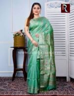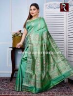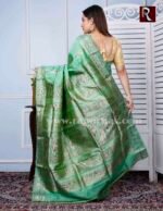 Swarnachari Silk Saree of Light Green shade . Baluchari Silk Saree and Swarnachari silk Saree are the very essence of Bengal heritage and aesthetics . Rediscover yourself with this exclusive Saree from the looms of Bengal.